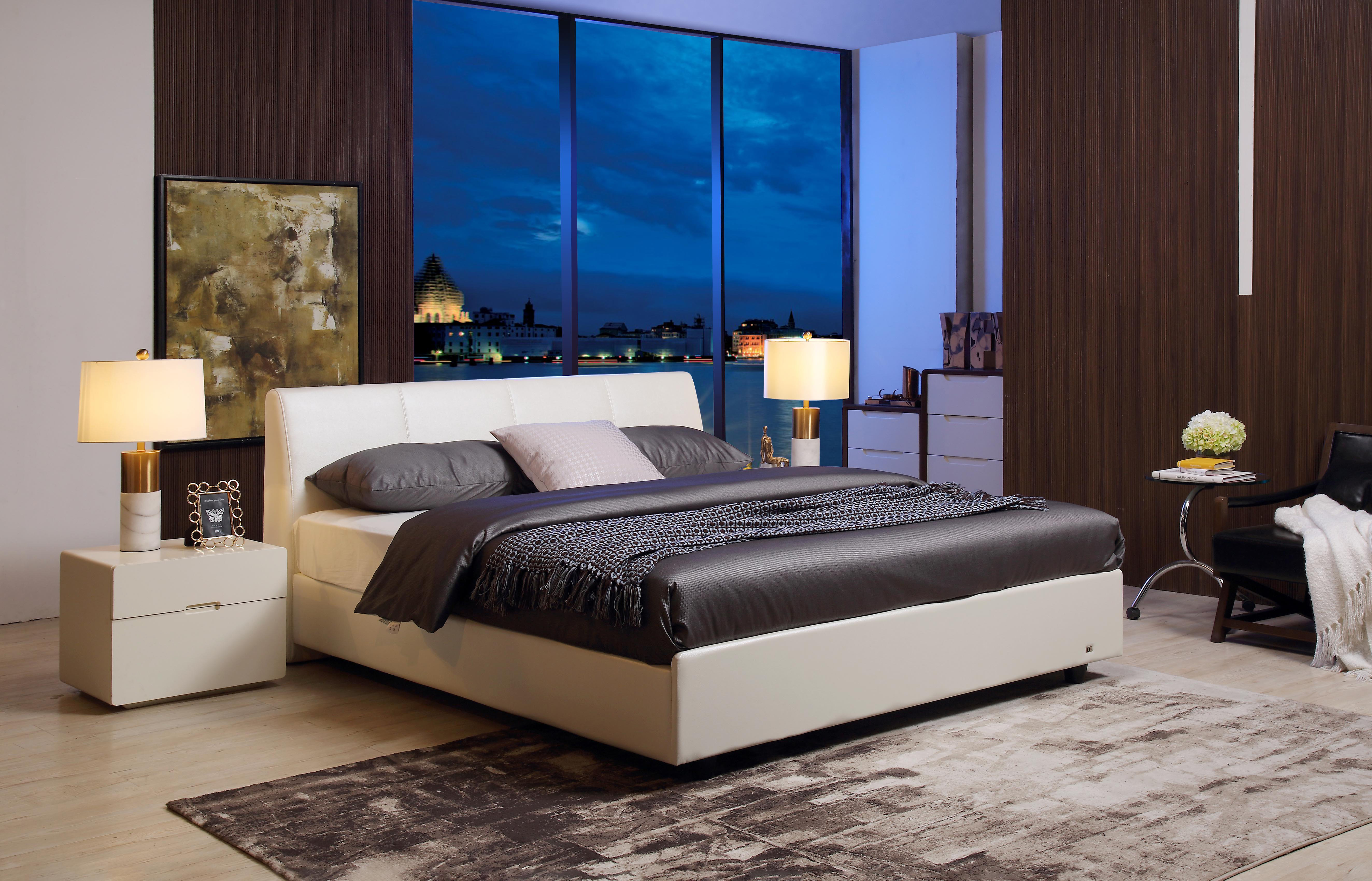 With" Urban Minimalist Sanctuary " at its core, this soft bed combines the neat lines of modernism with the gentle texture of leather.