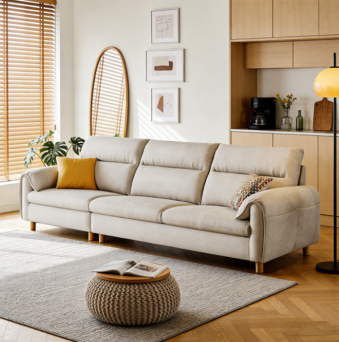 It prioritizes comfort without compromising on style, using premium, durable fabrics that are soft to the touch and easy to maintain. The design rejects unnecessary ornamentation, instead focusing on clean lines, natural materials (like solid wood legs), and a focus on tactile comfort. It’s not just a piece of furniture—it’s a sanctuary where you can unwind, connect, and find peace in the chaos of daily life.