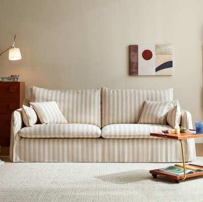 The vertical stripe texture visually lengthens the space, weakens the heaviness of the sofa, and at the same time conveys a retro and fresh attitude towards life-there is no need to be deliberately refined, making the sofa a gentle container for you to unload fatigue and embrace laziness.