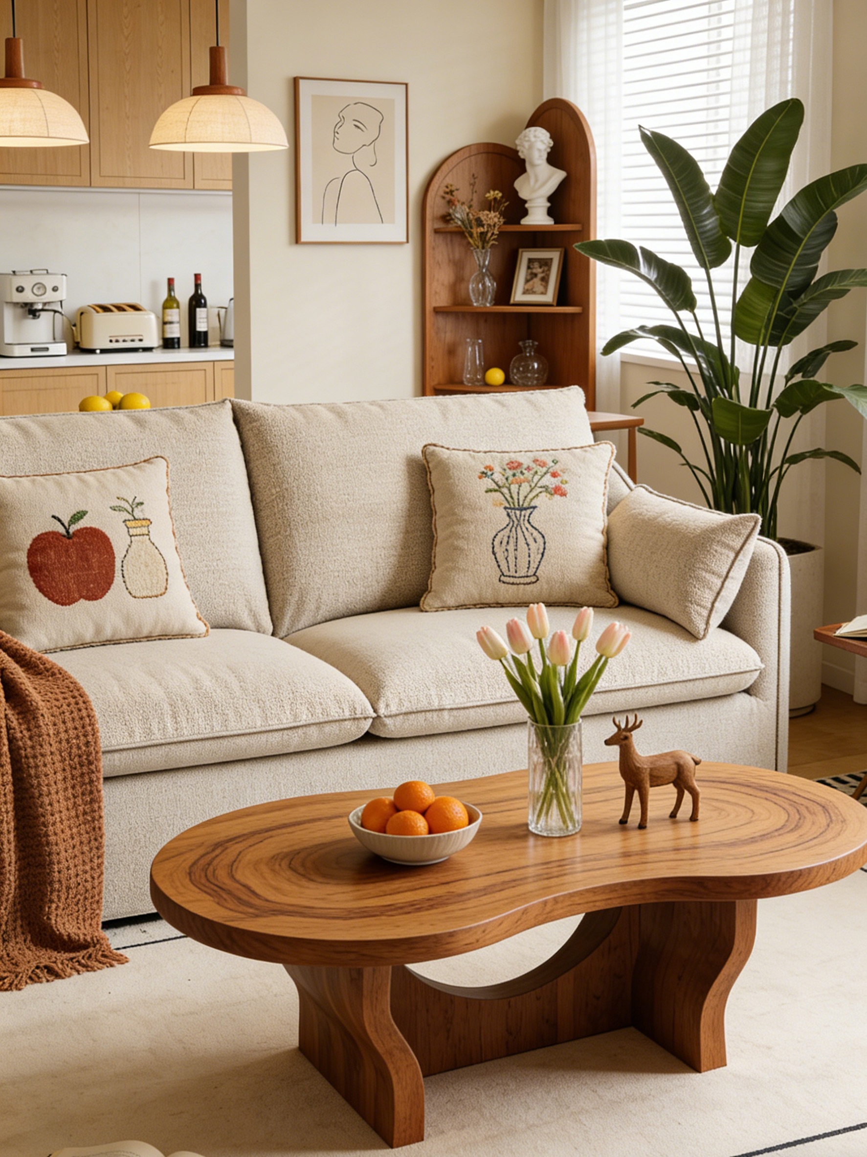 Low-saturation neutral tones effortlessly complement a variety of interior styles, such as natural wood and creamy aesthetics, lending an instant sense of laid-back warmth and creating a soft, soothing atmosphere.