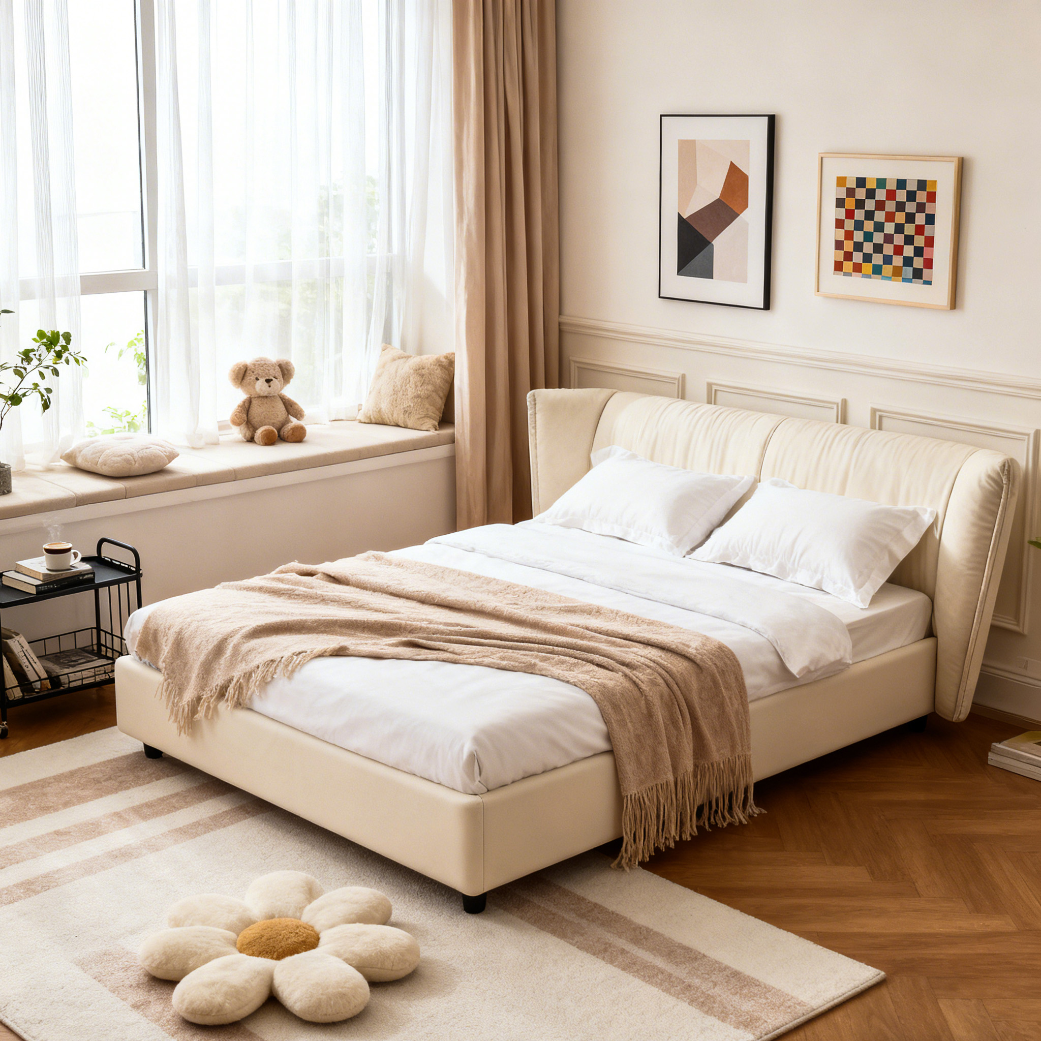 When the cream white gently wrapped in every inch of skin, all the fatigue at the moment melt. It is not just a bed, but also a corner that allows you to completely empty and return to pure spirit, making every sleep like a soft cloud.
