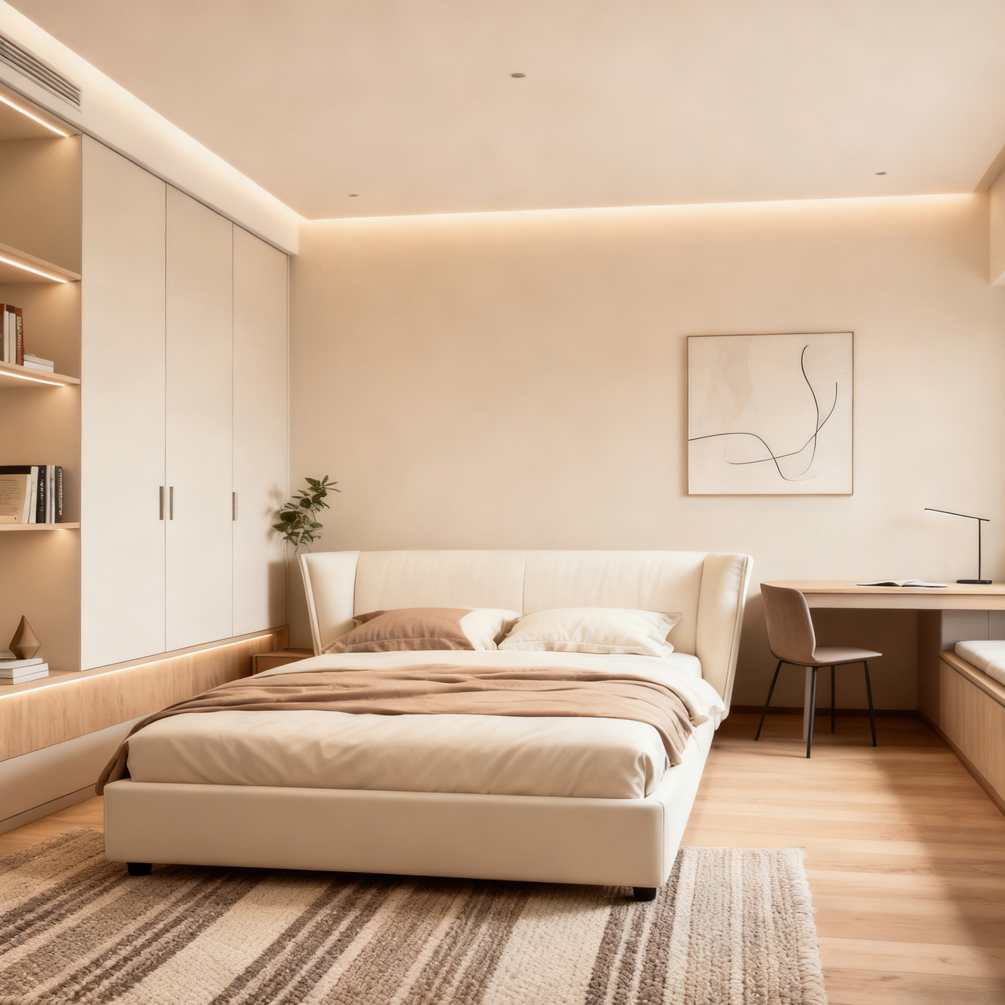 In the silence of light gray, get along with yourself gently. It uses a low-key sense of high-level, interpretation of the "less is more" design philosophy, so that the bedroom can become a safe haven against the noise of the outside world.