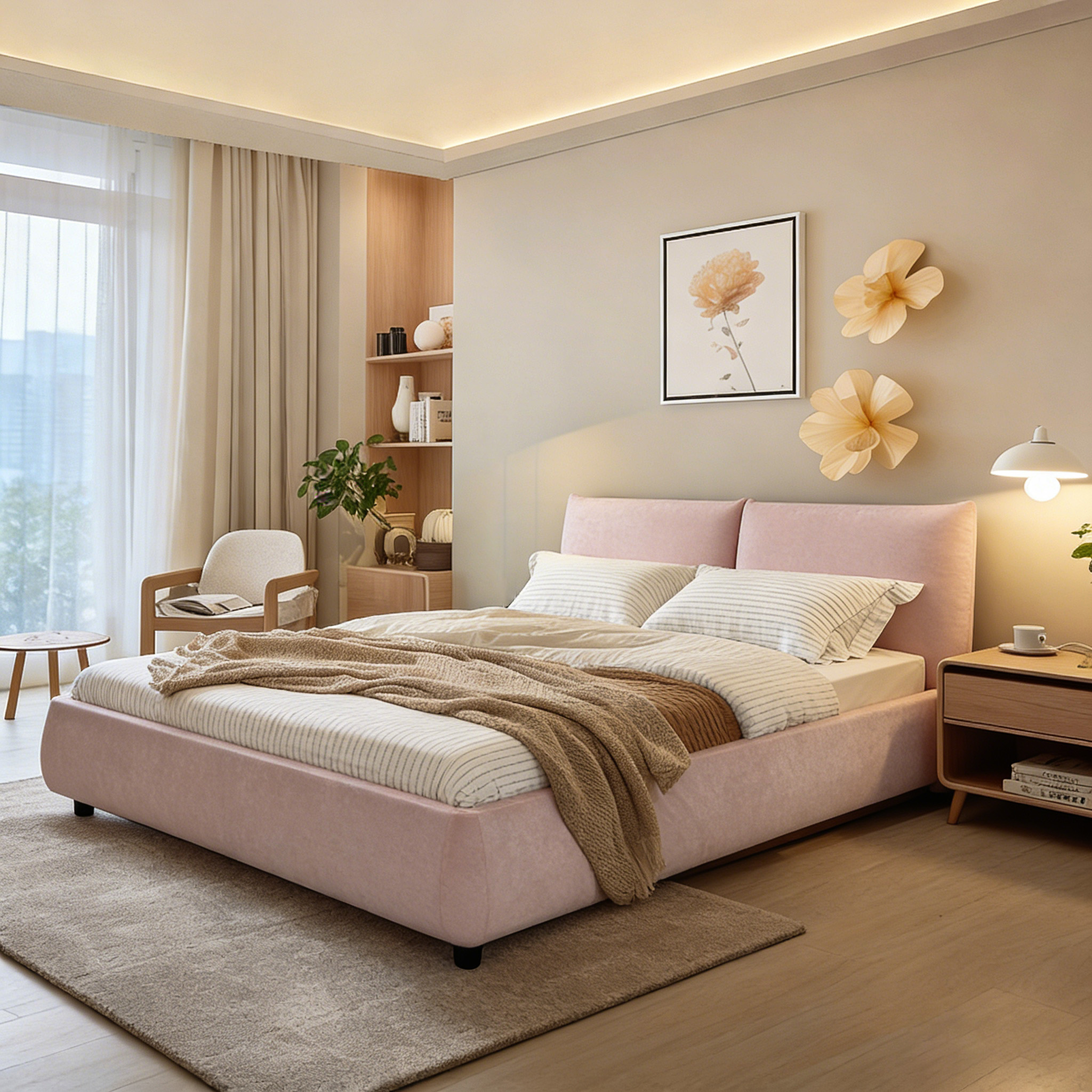 The design concept of Blush Cloud Bed is to integrate gentle healing power and modern relaxation into the sleeping space.
