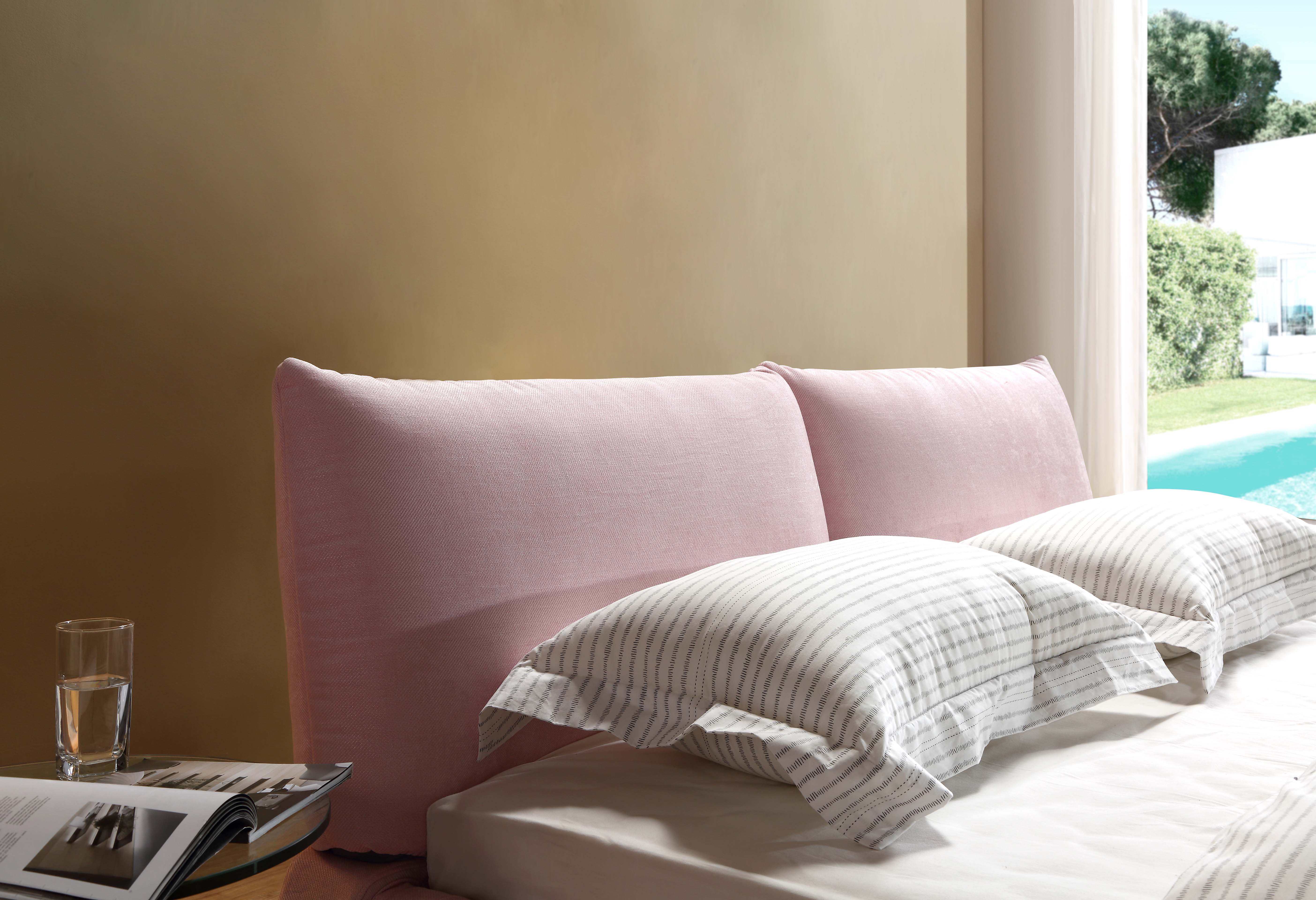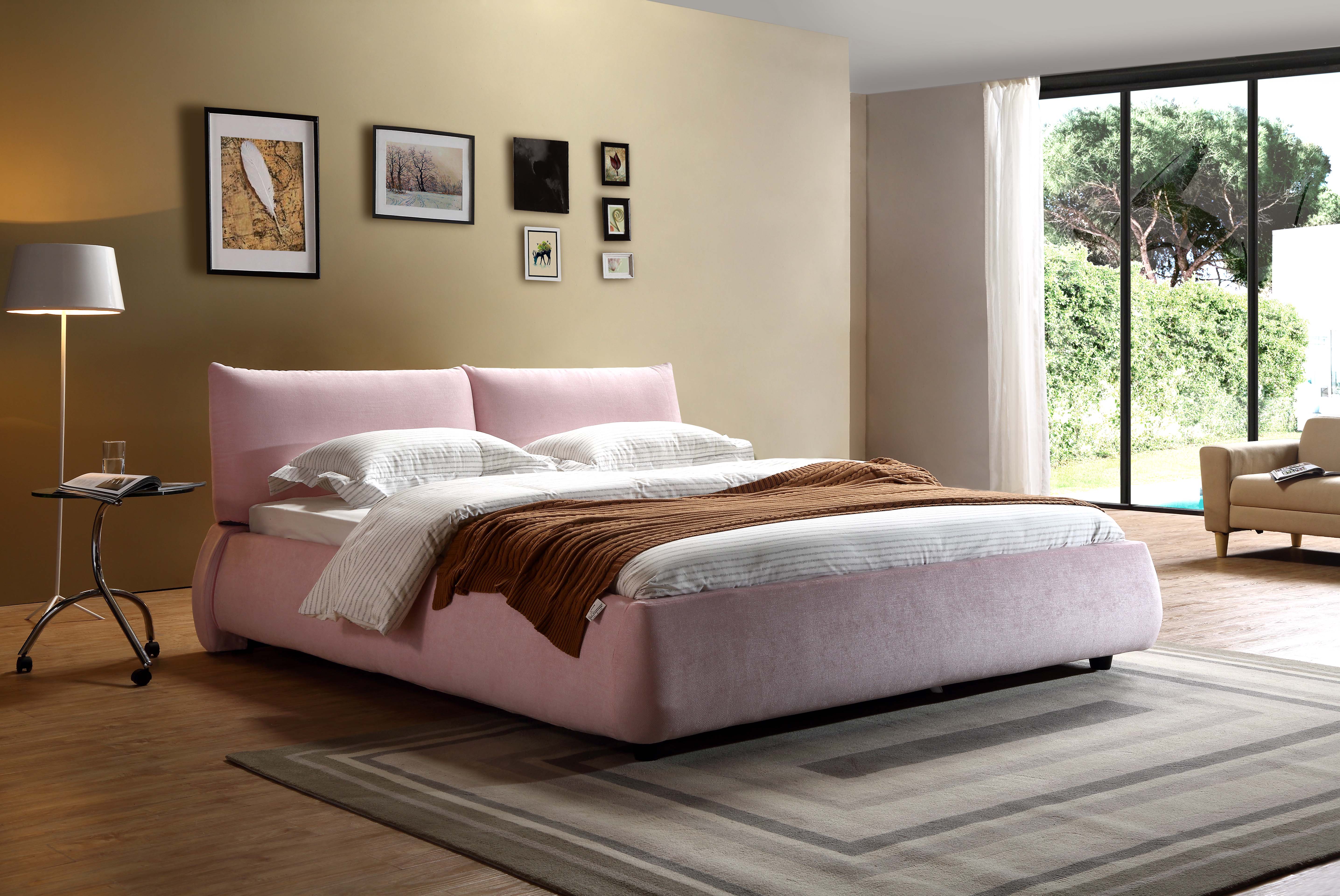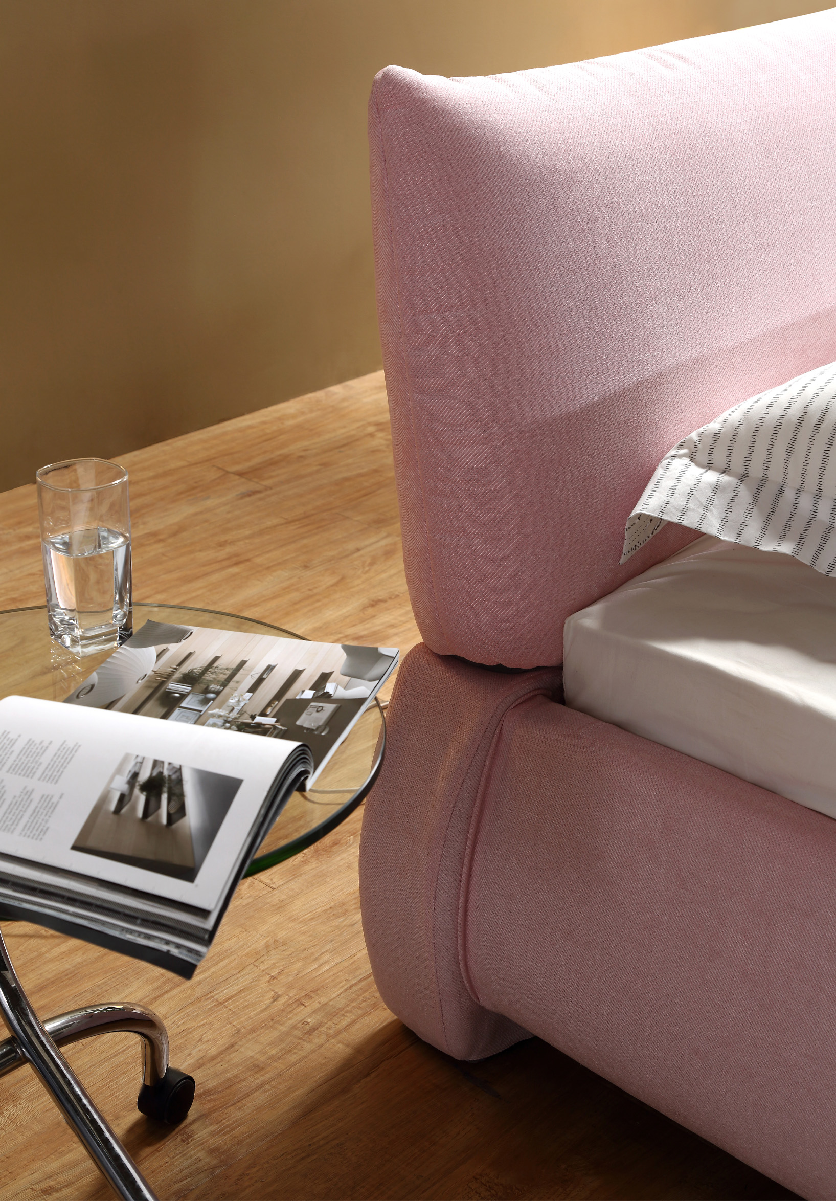 There are no sharp edges and corners, forming a perfect echo with the head of the bed. The slender black supporting feet "grow" from the pink soft bag with easy-falling geometric lines, cleverly "floating" The whole bed visually, weakening the heaviness of the furniture and making the space appear lighter and more transparent.