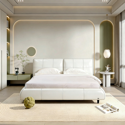 The two full soft backrests are divided into regular squares by even stitches, with neat lines and a full sense of order. The top is straight and the sides are slightly inward, which not only ensures the comfortable support when leaning, but also weakens the heavy feeling of the bed head with simple geometry, and becomes a highly recognizable visual symbol in the bedroom.