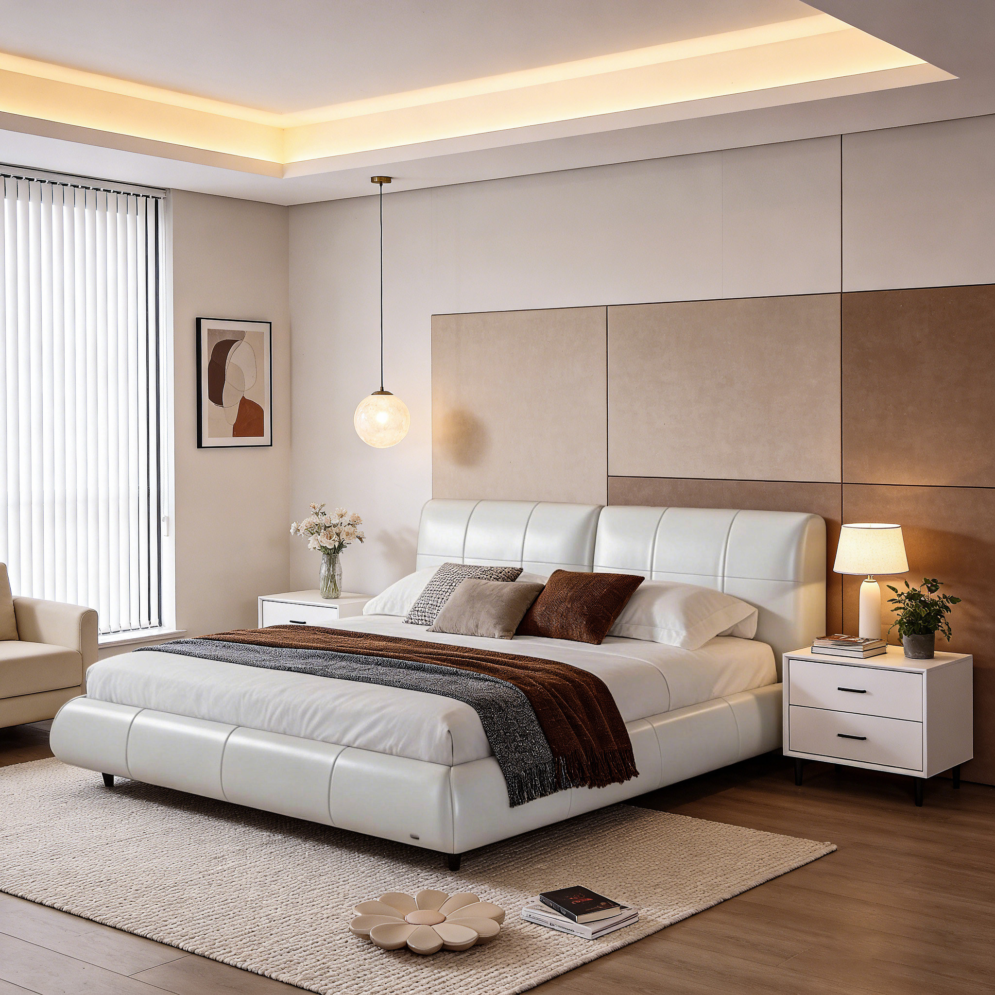Abandoning all redundant decorations, using pure lines, regular check patterns and warm materials to build a sleeping space full of order. It is not only a bed, but also an expression of life attitude-in a complicated world, returning to simplicity, embracing order, and feeling inner peace and strength every time you lie down.