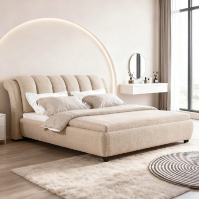 The micro-arc shape of the head of the bed and the integrated design of the bed body weaken the angular sense and convey the sleeping atmosphere of laziness and healing. With light luxury metal details, let gentle and delicate coexist, for the pursuit of relaxation of the urban crowd to create a tired healing space.