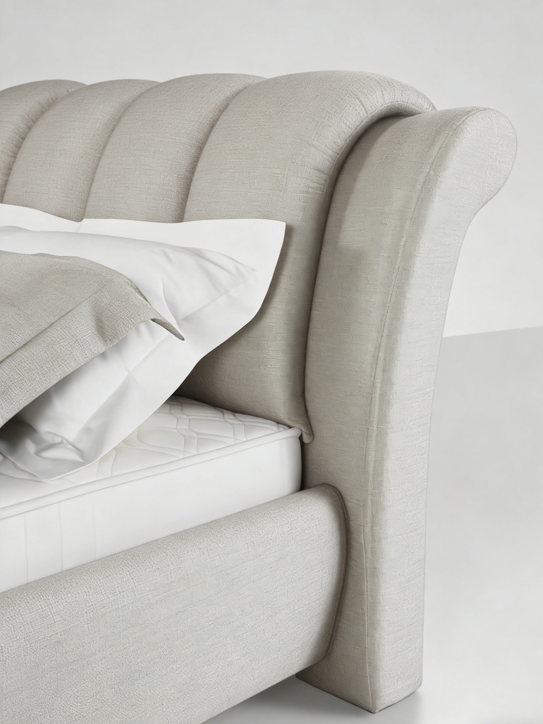 The one-piece rounded contour eliminates the sharp edges of traditional beds.