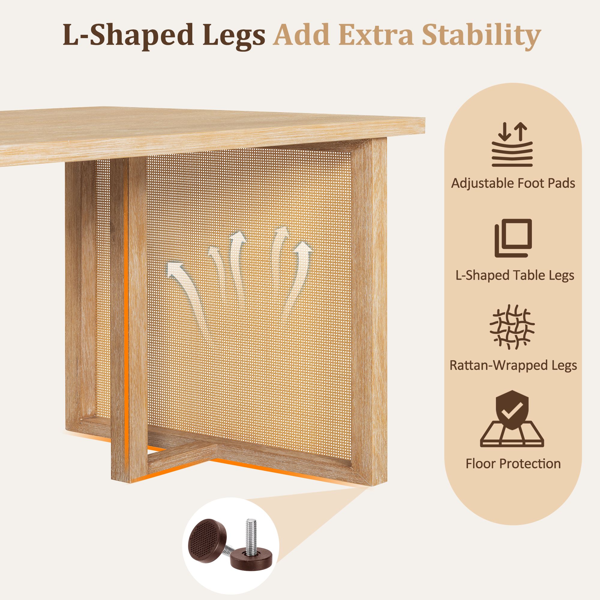 ![]() ![]() | Modern Rattan Light Wood Dining Set - 6-Piece Upholstered Chair Furniture