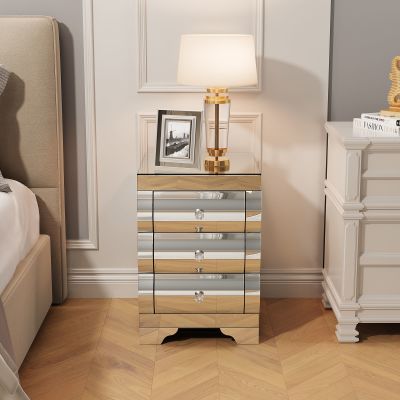 Modern Mirrored Gold-Accent Nightstand - 3-Drawer Luxe Bedroom Furniture