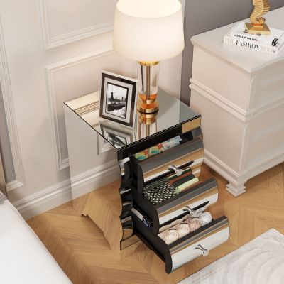 Modern Mirrored Gold-Accent Nightstand - 3-Drawer Luxe Bedroom Furniture--YFY-home, customerize furniture