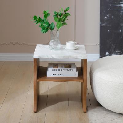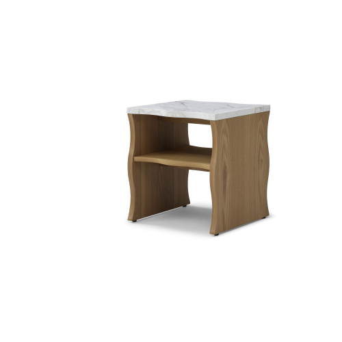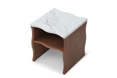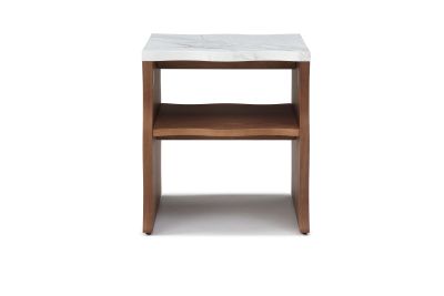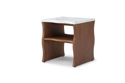 ![]() ![]() | Modern White Marble Top Brown Wood Nightstand - Scalloped Edge Bedroom Furniture