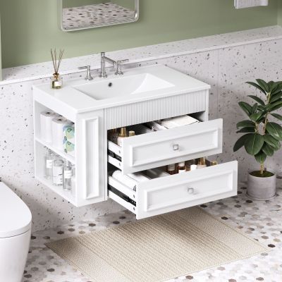 Modern White Bathroom Vanity - 2-Drawer Sink Cabinet--YFY-home, customerize furniture